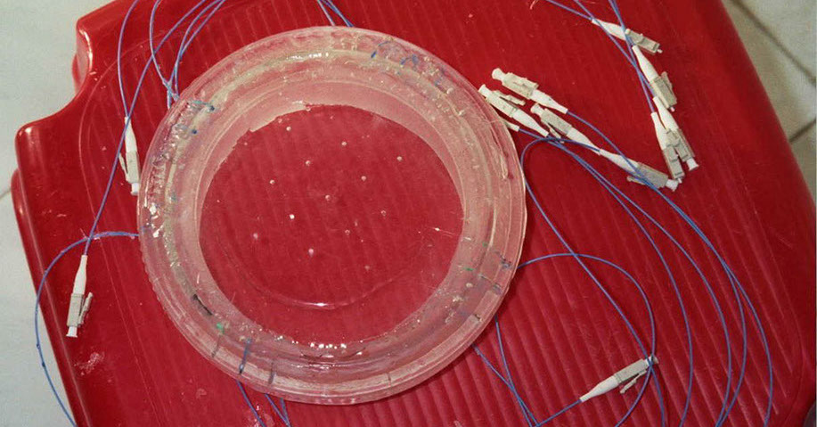 An electrooptic device for laser radiation output from 12 fibers at an angle of 90º